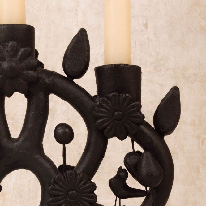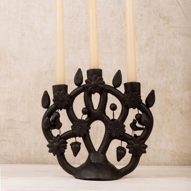 The iconic clay Tree of Life, representing the creation myth, was originally used by Spanish missionaries as a tool for evangelization. During the 19th century and into the first half of the 20th century, these candlesticks were given to newlywed couples as a symbol of fertility and abundance. Today, our simplified version, featuring flowers and birds, is the perfect piece for your table. Hand-molded and hand-painted in Izúcar de Matamoros, Puebla. Crafted by Joaquin Balbuena.