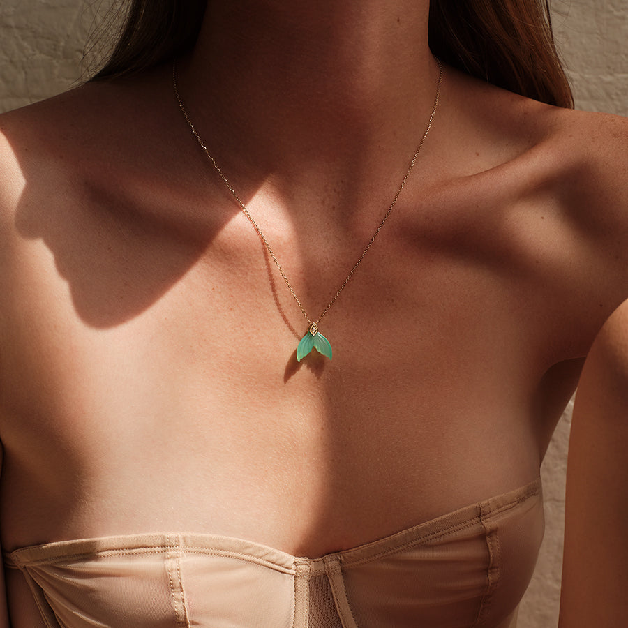 MERMAID – Gold Necklace, Green Chalcedony & Diamond